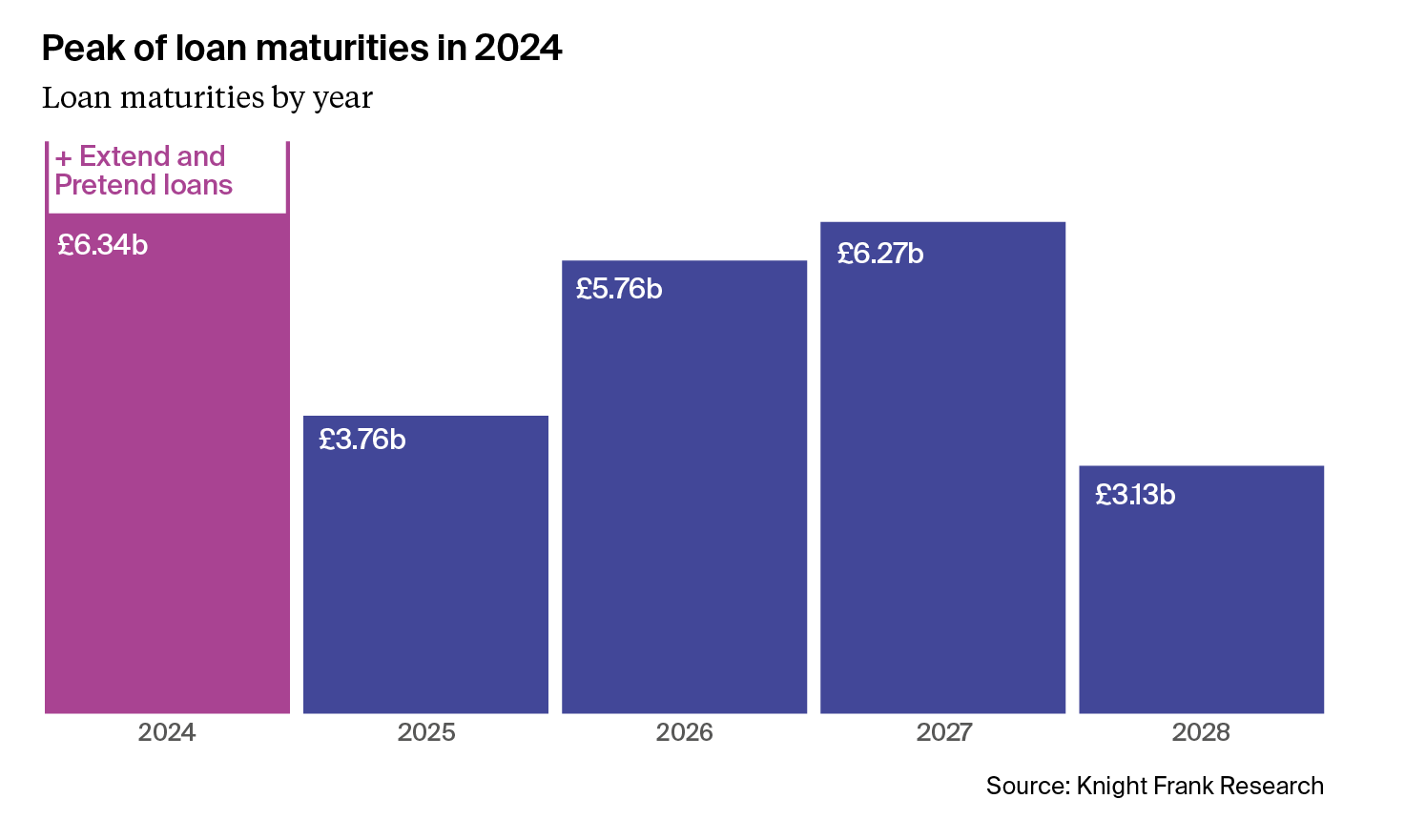 This article delves into the future recovery of London’s commercial real estate sector, focusing on the interaction between a peak in debt maturities and the crucial process of price discovery. We further examine the role of private buyers in spearheading recovery capital and identify potential followers. Lastly, we set out the significance of performance outlook in shaping the market’s path forward, the message being, while not yet clear of headwinds, we forecast evolving opportunities, across the risk spectrum over the year ahead.