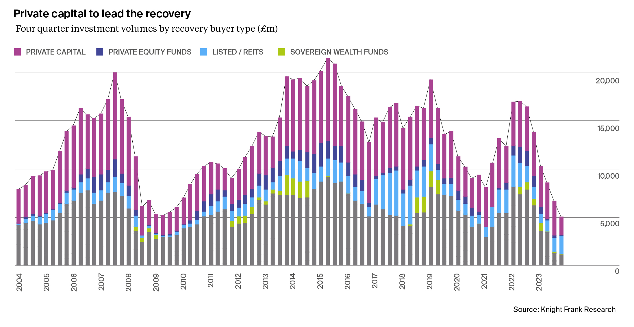 Private equity firms have traditionally been at the forefront of capitalising on short-term recovery opportunities. Their structured approach and capacity to mobilise significant capital have enabled them to leverage market downturns effectively. However, the more recent recoveries present a different scenario. This time, many private equity firms are contending with more strained conditions in their base markets, particularly the US, where the office occupier market faces considerable challenges. This situation may result in a more measured re-entry into the London market. UK Real Estate Investment Trusts (REITs) are currently outpacing private equity in seizing market opportunities, having already invested £1.5bn in 2023 into the London commercial market versus £500mn for private equity.