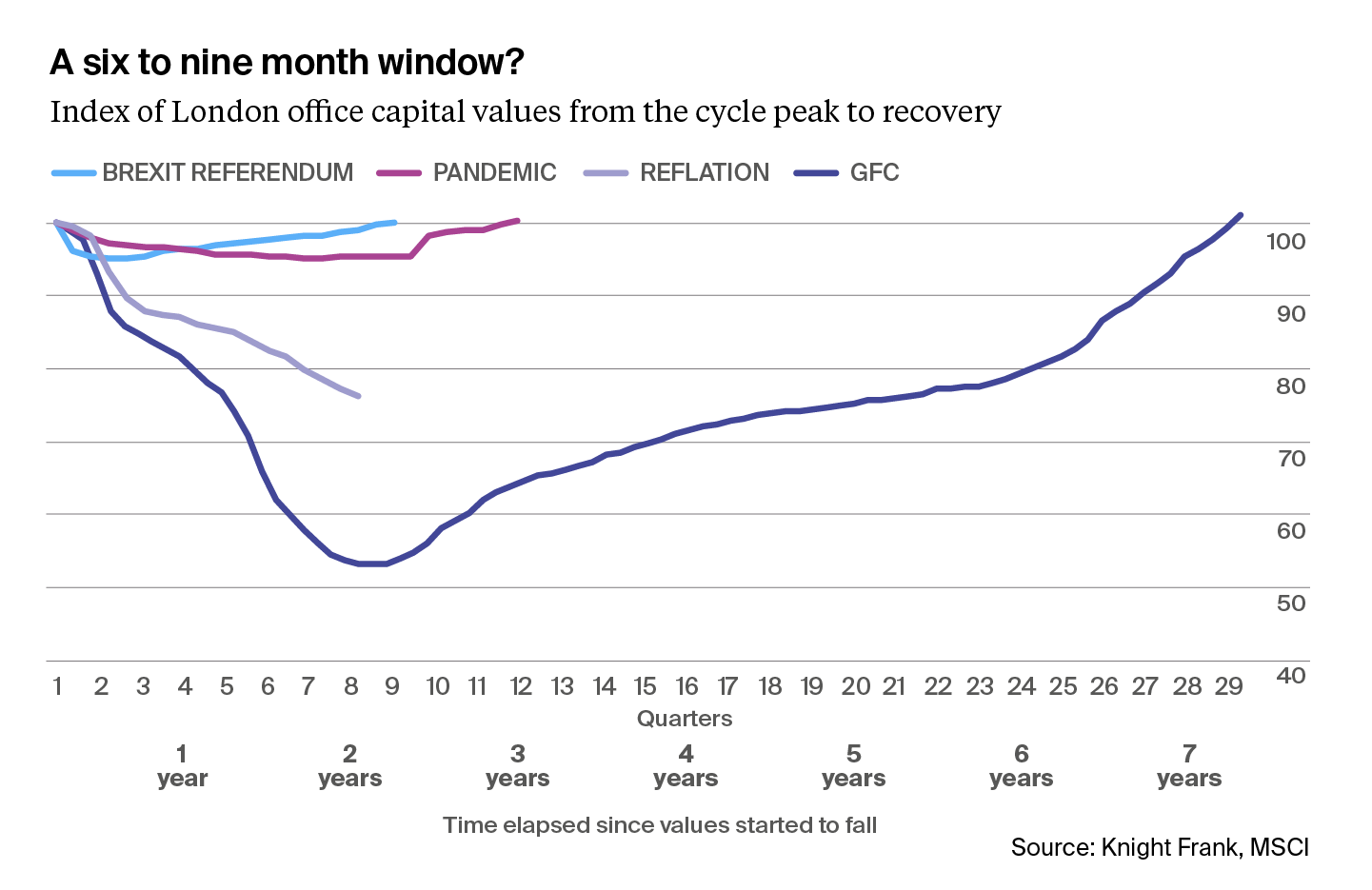 We have looked back at previous cycle shocks to the London commercial real estate investment market; Lehman’s collapse and the Global Financial Crisis, the Brexit Referendum and Covid to identify patterns of investors to gauge who will lead the market’s recovery in this cycle?