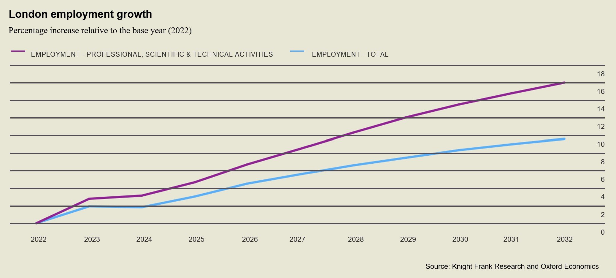 "London’s future employment growth is forecast to be led by the technology and scientific sectors, which will outstrip the overall employment growth rate in the capital."