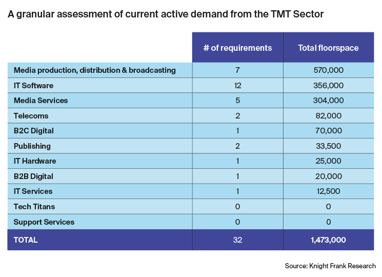 "More than 900,000 sq ft of demand derives from two sub-sectors – IT Software and Media Production, Distribution and Broadcasting."