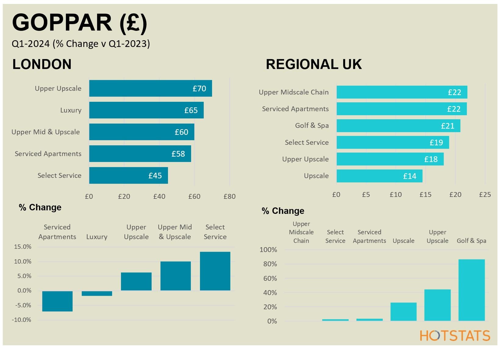 Meanwhile, it was a positive first quarter for the Regional UK hotel market, with respectable RevPAR growth, achieved from both an uplift in occupancy and ADR. Increased demand for meetings and events, and strong growth in corporate and negotiated rates contributed to the respectable growth in revenues. Golf & Spa hotels and full-service Upscale and Upper-Upscale outperformed the regional market in terms of revenue growth and profitability.