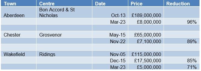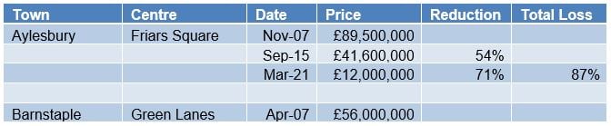 There were a handful of trades which stood out as even worse than “the bad”, where values had fallen by over 90%, or where the value had fallen by an exceptional 90% in rapid time since 2016. Oversupply is at the heart of the issue here with new centres or exceptional out-of-town competition really driving these drops in value.