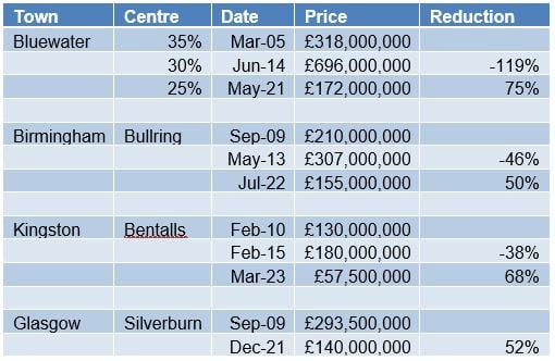 Firstly, very few assets have been immune and the number of centres that have been acquired and subsequently sold at a higher price since 2010 can be counted on one hand (without using all your fingers!). So we list the “good” assets as those which have held their value best in relative terms.