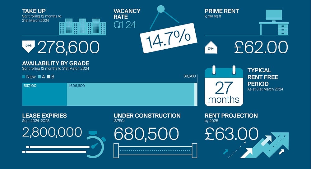 With 680,500 sq ft of development underway, there will be a further increase in availability in the near term.
