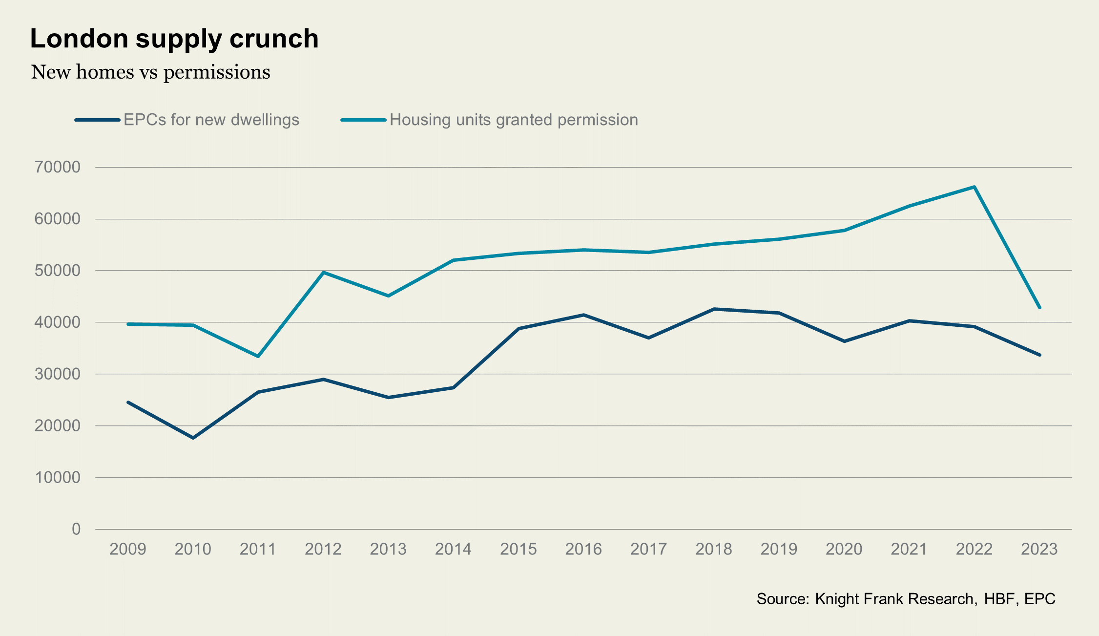 Snapshot of key Knight Frank market data and trends impacting residential development in the capital