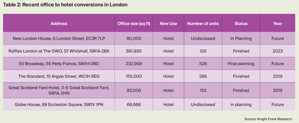 The city’s vibrant cultural scene, historical landmarks, and business opportunities make it a prime location for hotels. Unlike office to residential conversion, planning consent is required but there have been a number of examples. An efficient redevelopment will typically be achieved with low to mid-range floor to ceiling heights; a strong locational driver; and flexible floor plates.
