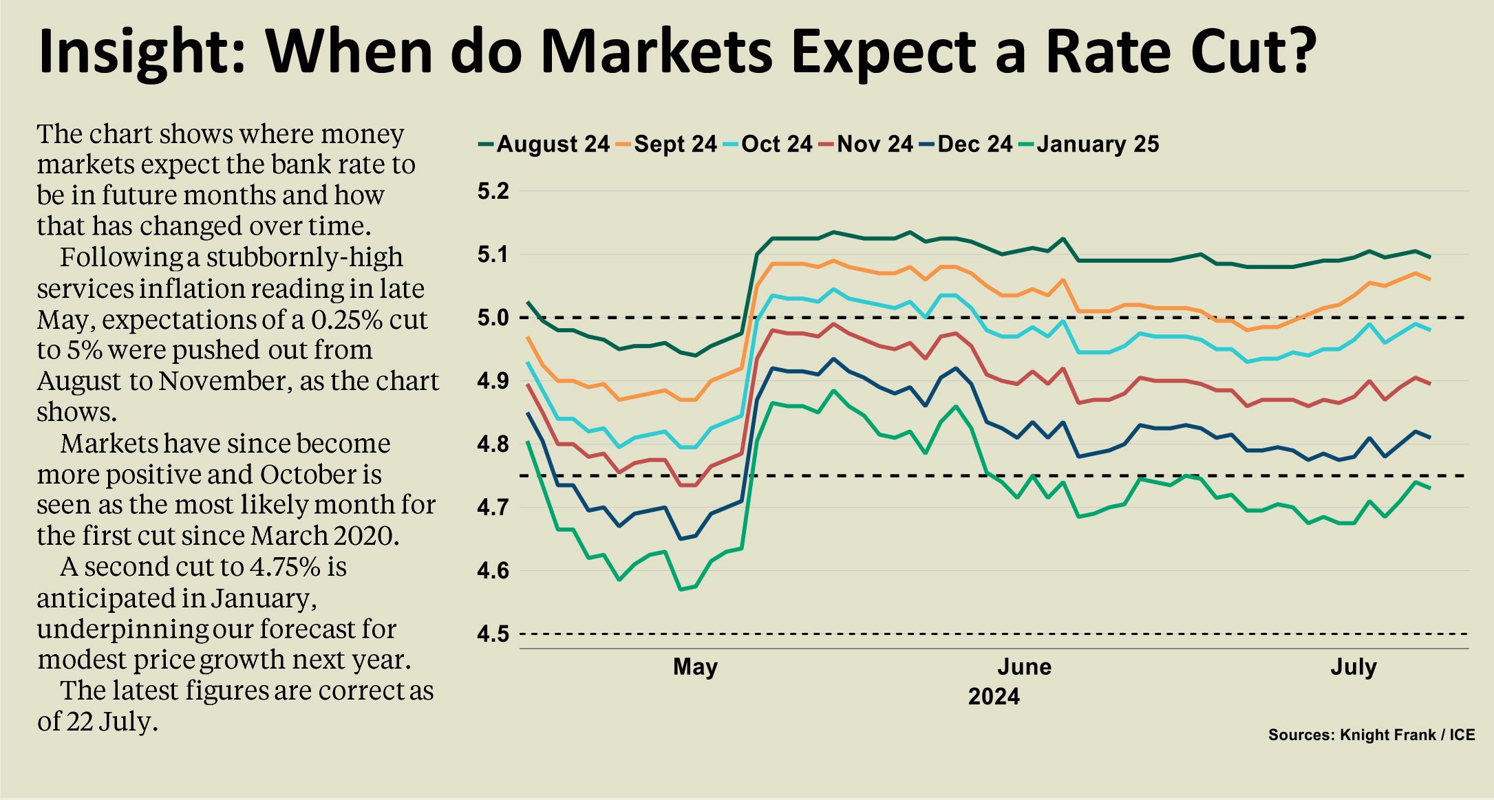 The final, and perhaps biggest question mark facing buyers and sellers, is the timing of the first interest rate cut since March 2020.