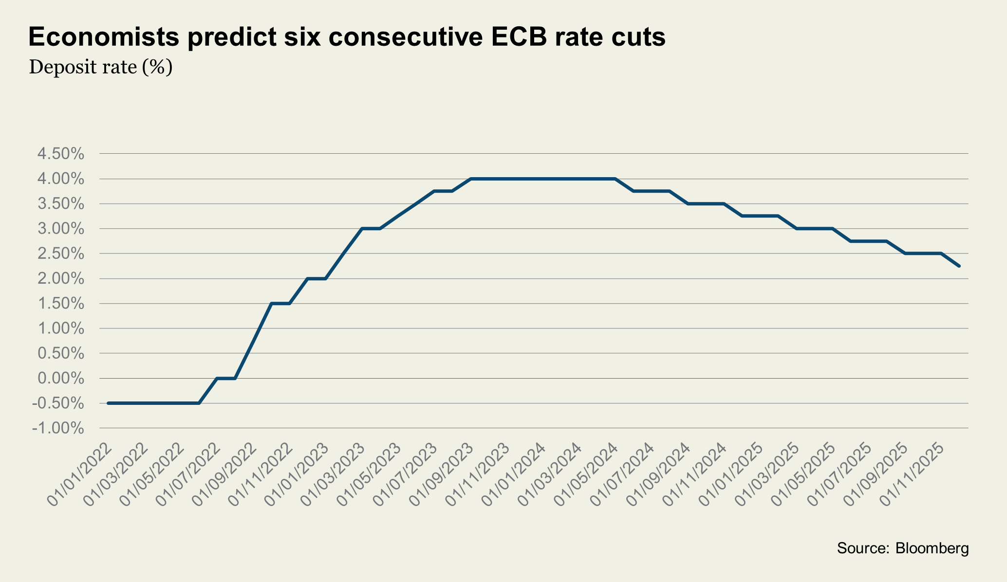 This week, a Bloomberg poll of economists predicted six consecutive rate cuts lie ahead, putting the base rate at 3.25% by the end of 2024 and 2.25% by the end of 2025.
