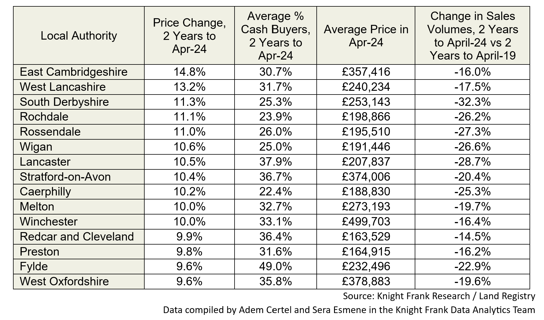 Meanwhile, prices increased by an average of 1.4% in the two years to April 2024 in the top 25 areas for cash buyers while the equivalent rise was 0.9% in the bottom 25 locations.