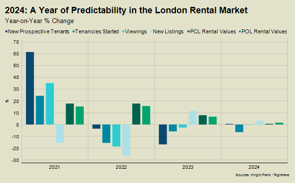 When comparing London’s rental market in 2024 and 2023, the most striking thing is the similarity between the two years.