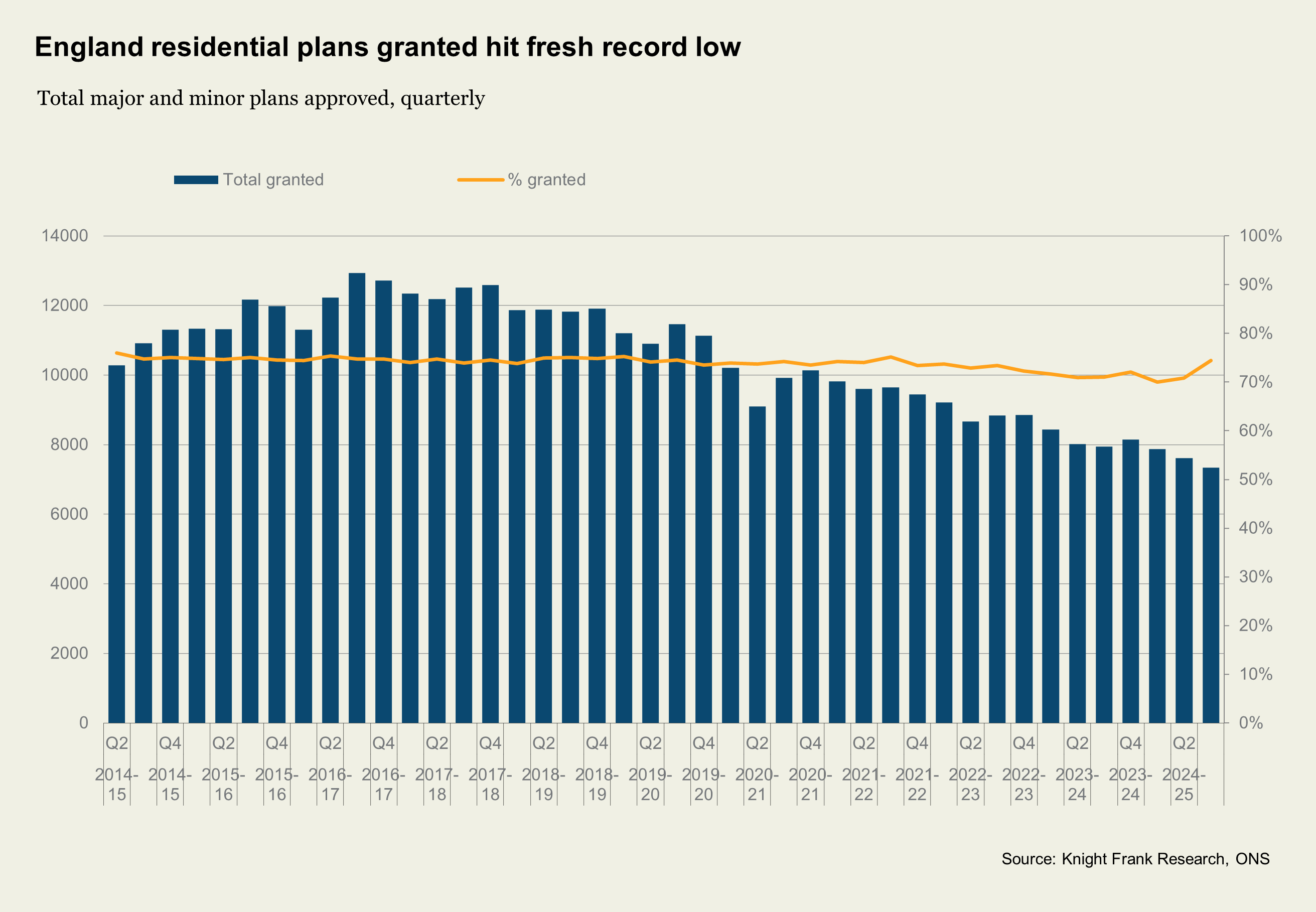 Residential planning approvals across England hit a fresh record low in the third quarter last year, with just 7,344 plans granted—a significant 40% drop from the most recent peak in Q3 2016, when over 12,900 approvals were secured.