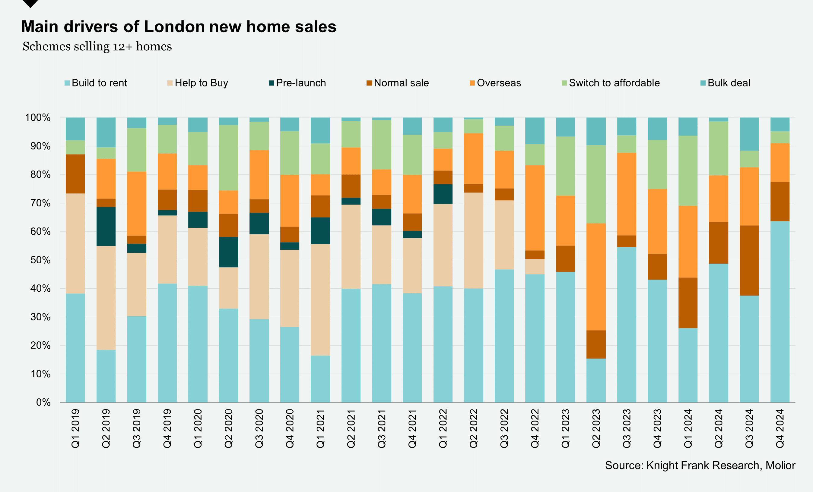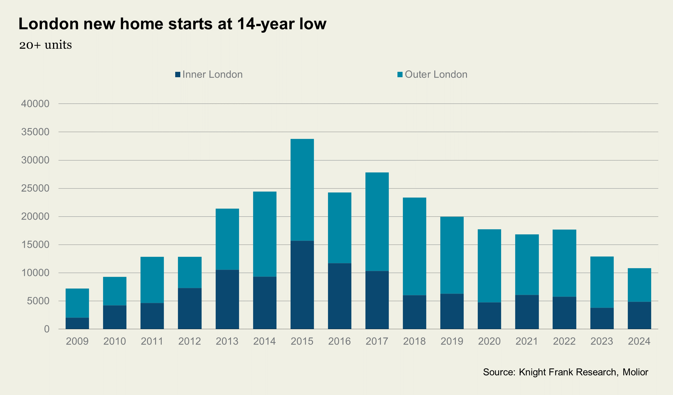 In the capital, private housing starts in London fell to their lowest level in 14 years in 2024, down nearly 70% from their 2015 peak. Build-to-rent (BTR) starts have also hit their lowest annual level since 2014, our data shows.