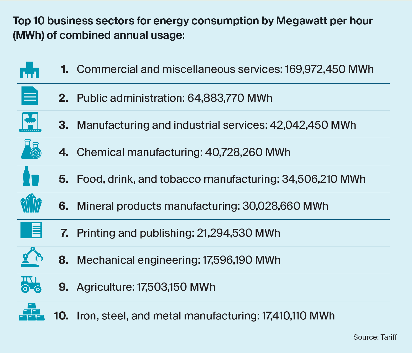 Compared with other segments of the economy, production industries are heavy users of energy and manufacturing sectors dominate the list of largest business energy consumers (by total usage). However, even within manufacturing, there is great variation in terms of energy usage and costs depending on the type of manufacturing taking place.