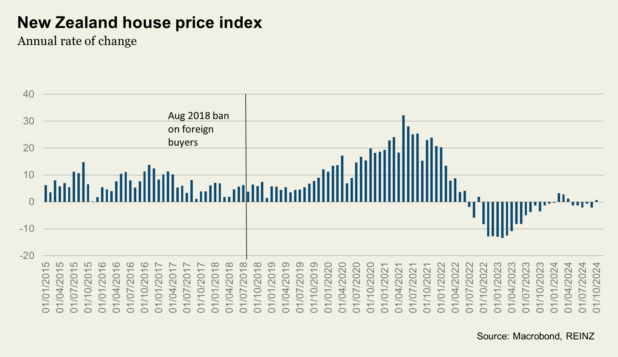 For example, New Zealand introduced a ban on foreign buyers in 2018, with exceptions for Australians and Singaporeans due to separate trade agreements. Before the ban, house prices were rising at a rate of 4% per year, a year later, they were rising at 6% and during the pandemic, annual growth reached a high of 32% as the market reopened.