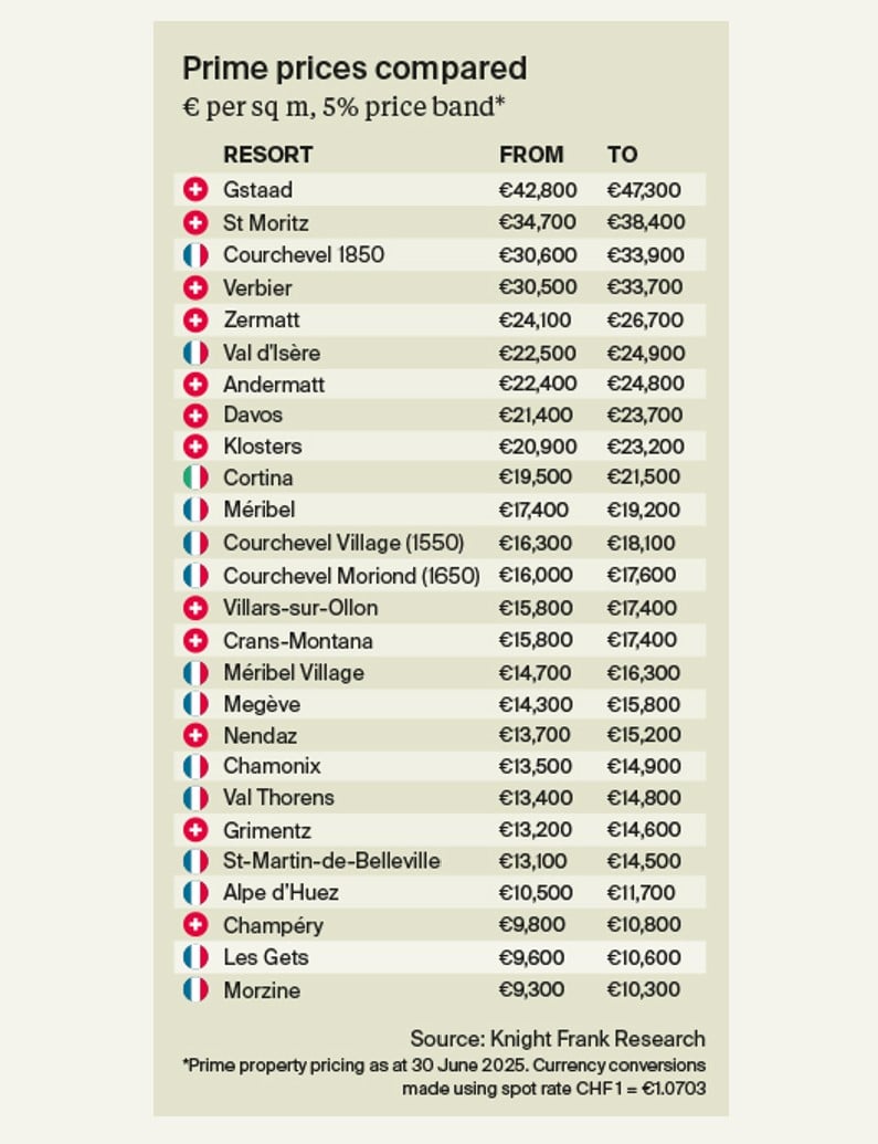 We assess prime prices across leading alpine resorts, looking at how they compare and their performance over the past year