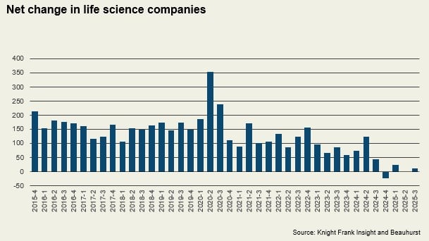 While the Golden Triangle still dominates, a wider cut of the data and the growth rates point to emerging clusters elsewhere. Identifying demand now means tracking the sub-sectors within life sciences that are outperforming even as funding conditions tighten.