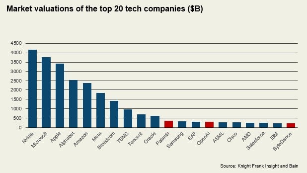 Bain’s latest Tech Report notes that while the magnificent seven retain their lead, AI has spawned challengers across the stack, from infrastructure and models to devices, search and browsers. Expect greater competition in this space and greater demand from the AI sector. Early identification of the potential next titans is key.