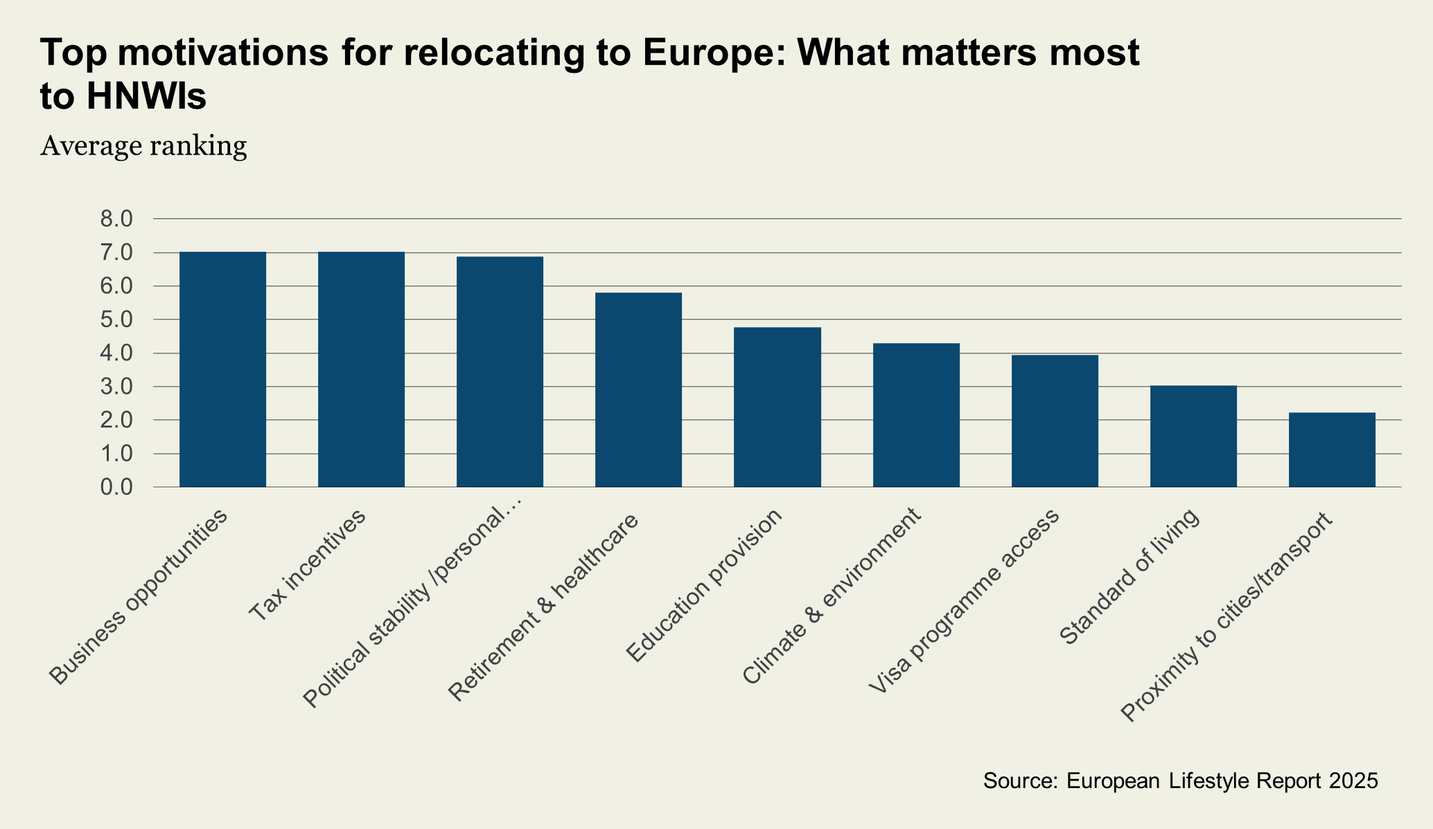 Globally, over 100,000 high-net-worth individuals (HNWIs) are set to relocate in 2025, with Europe topping the list of preferred destinations, according to the European Lifestyle Report.