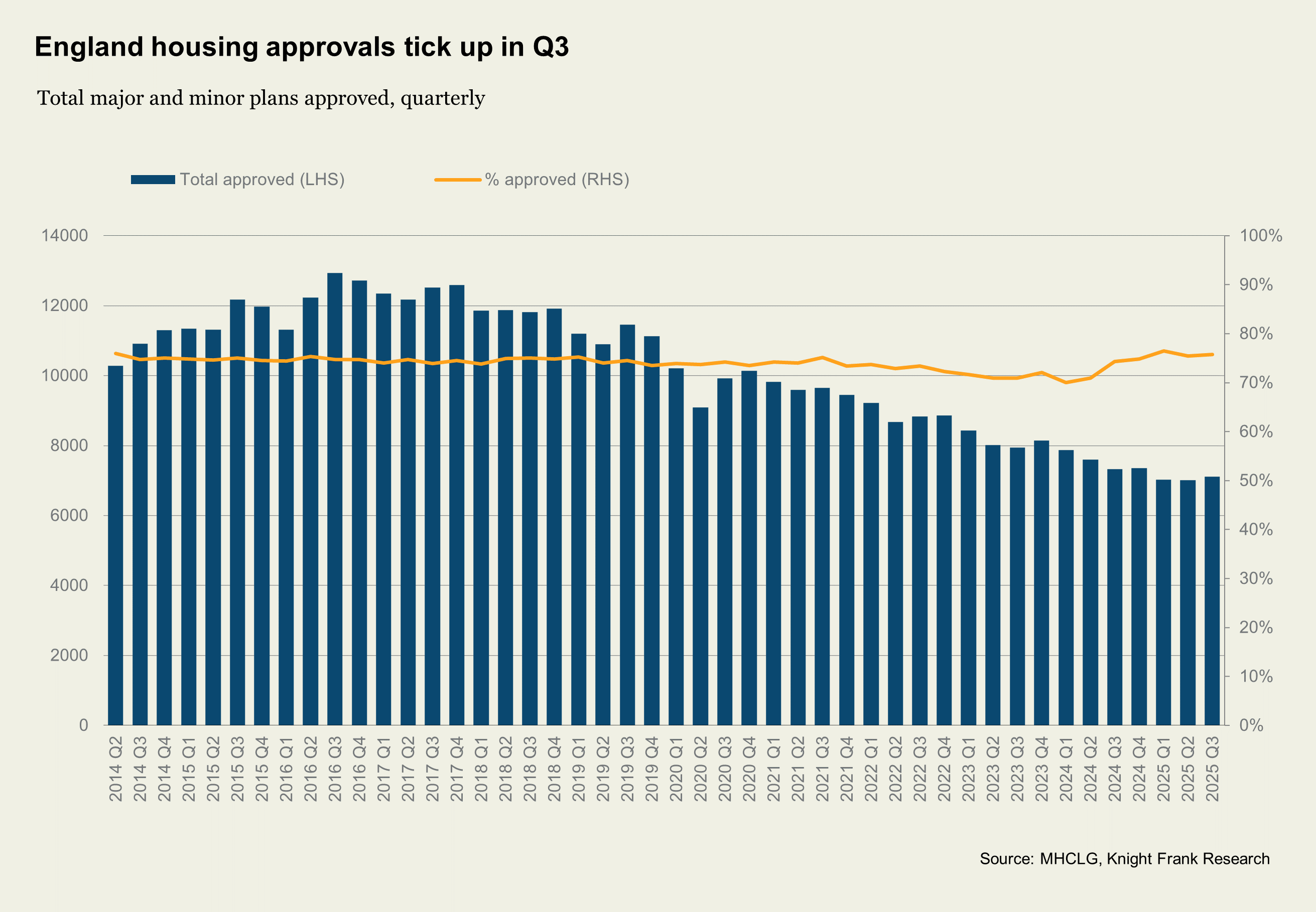Approvals for new homes in England and London held steady in Q3 as planning reforms progress