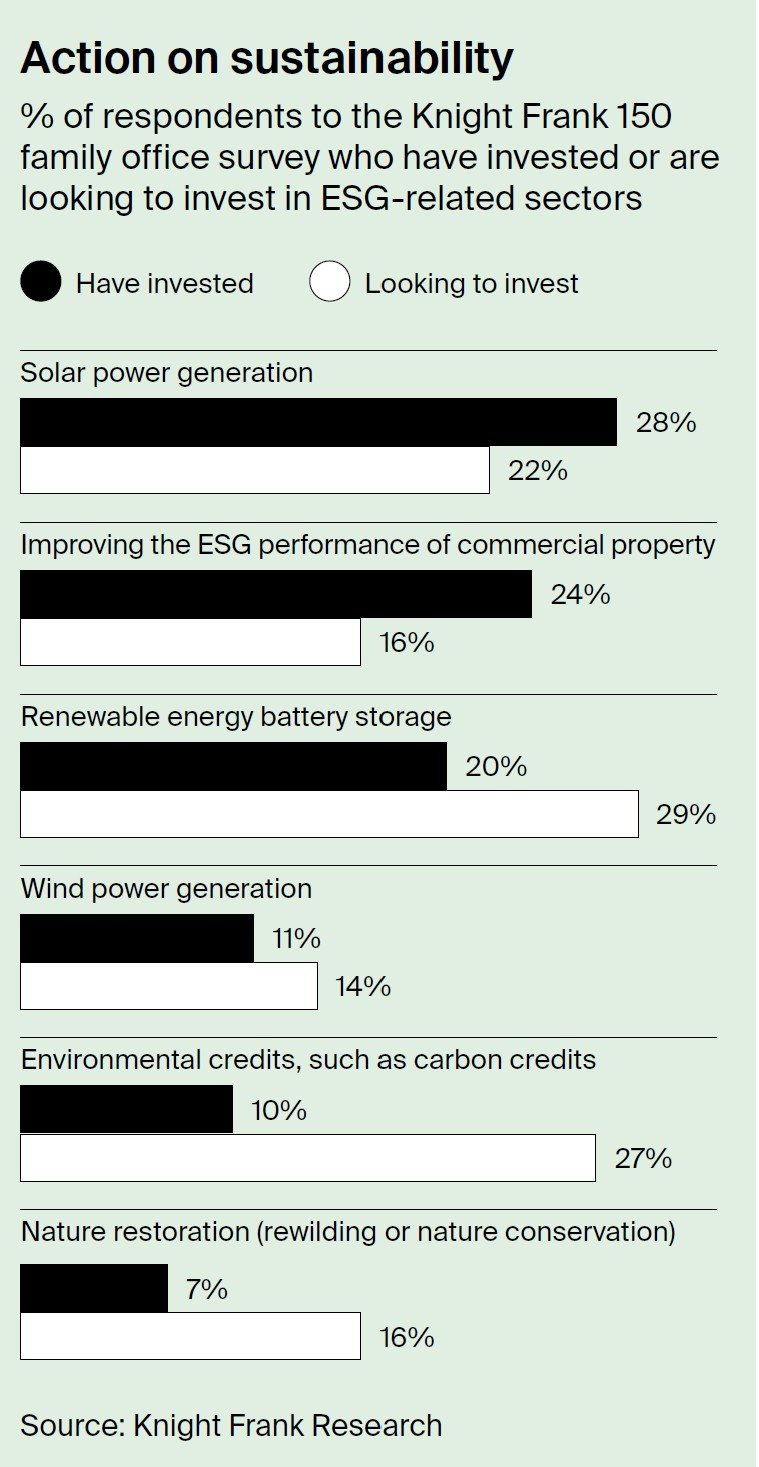 This year's report, delves into how ESG has evolved, particularly through its integration into property investments. Notably, 28% of the family offices surveyed have invested in solar power generation, while 24% have focused on improving the ESG performance of commercial properties. Looking ahead, renewable energy provision is the most sought-after category, with 29% exploring opportunities in battery storage investment and 22% in solar power generation.