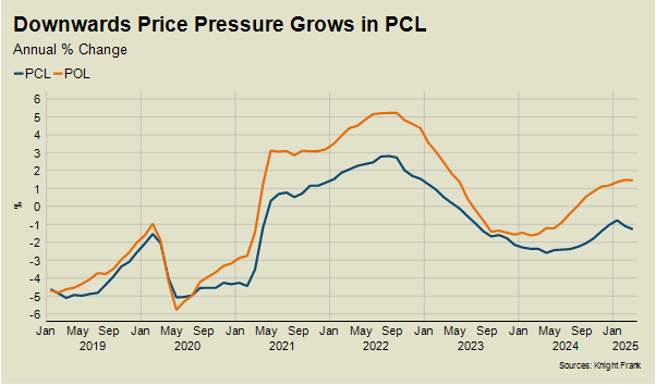 Indeed, average prices in prime central London fell 0.7% in the three months to March, which was the steepest quarterly decline since January 2024. The annual decline widened to 1.3% in March from 0.8% in January.