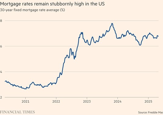 In March, existing homes sold at the slowest pace of any corresponding month since 2009, according to National Association of Realtors data covered by the FT. The average 30-year mortgage rate was 6.76% in the week ending May 1, according to Freddie Mac.