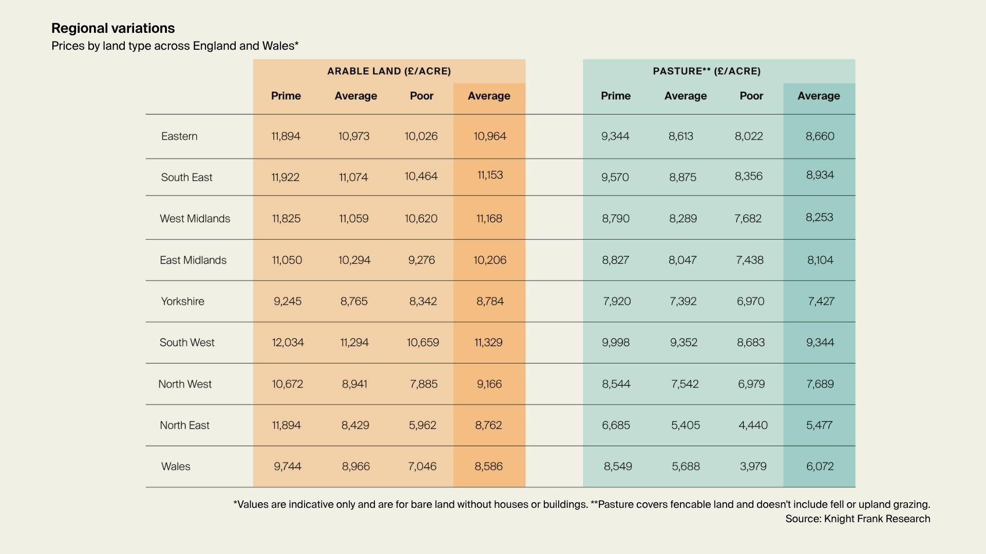 Prices vary across the country. According to our county-by-county analysis of arable and pasture prices (see table), some of the highest land values can be found in south-west England, with the lowest in the north-east.