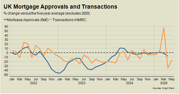 The nil-rate band for stamp duty was lowered in April to £125,000 from £250,000, which meant completing in March enabled a maximum saving of £2,500 or £11,250 for first-time buyers. As a result, the number of UK transactions was 57% above the five-year average (excluding 2020) in March, which was followed by a 37% slump in April.