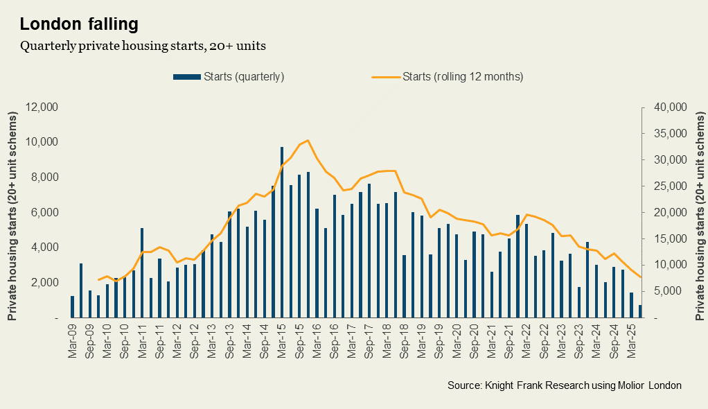 It is worth bearing in mind that the annual target for new home completions in London is 88,000 a year, or 22,000 per quarter. In the broader UK context, the capital is expected to deliver c.30% of the Government’s overall 1.5 million target over the next five years.