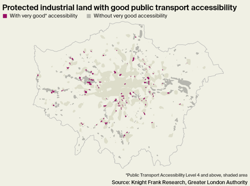 His analysis also found that 328 hectares of industrial land, with a total of 1.5 million sq ft of floorspace, is located in areas of very good public transport accessibility (PTAL 4, or better).