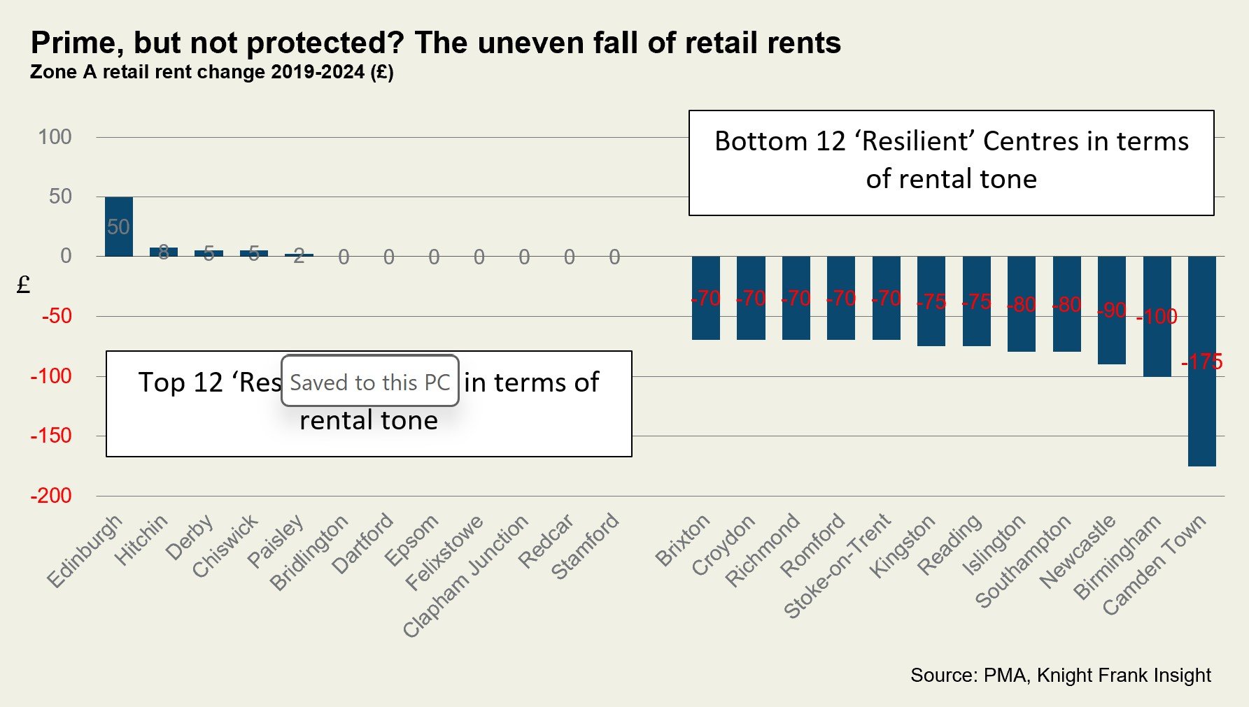 Rents provide a useful barometer as to resilience. But again, the evidence is totally inconclusive. Comparing prime zone As of the 300 PMA Centres on pre-COVID (2019) vs current levels, only 12 have not gone backwards. Of these, only Edinburgh could lay claim to being a ‘prime’ centre. In contrast, the other end of resilience spectrum features large cities such as Birmingham and Newcastle, plus other major destinations such as Croydon, Kingston, Reading and Southampton.