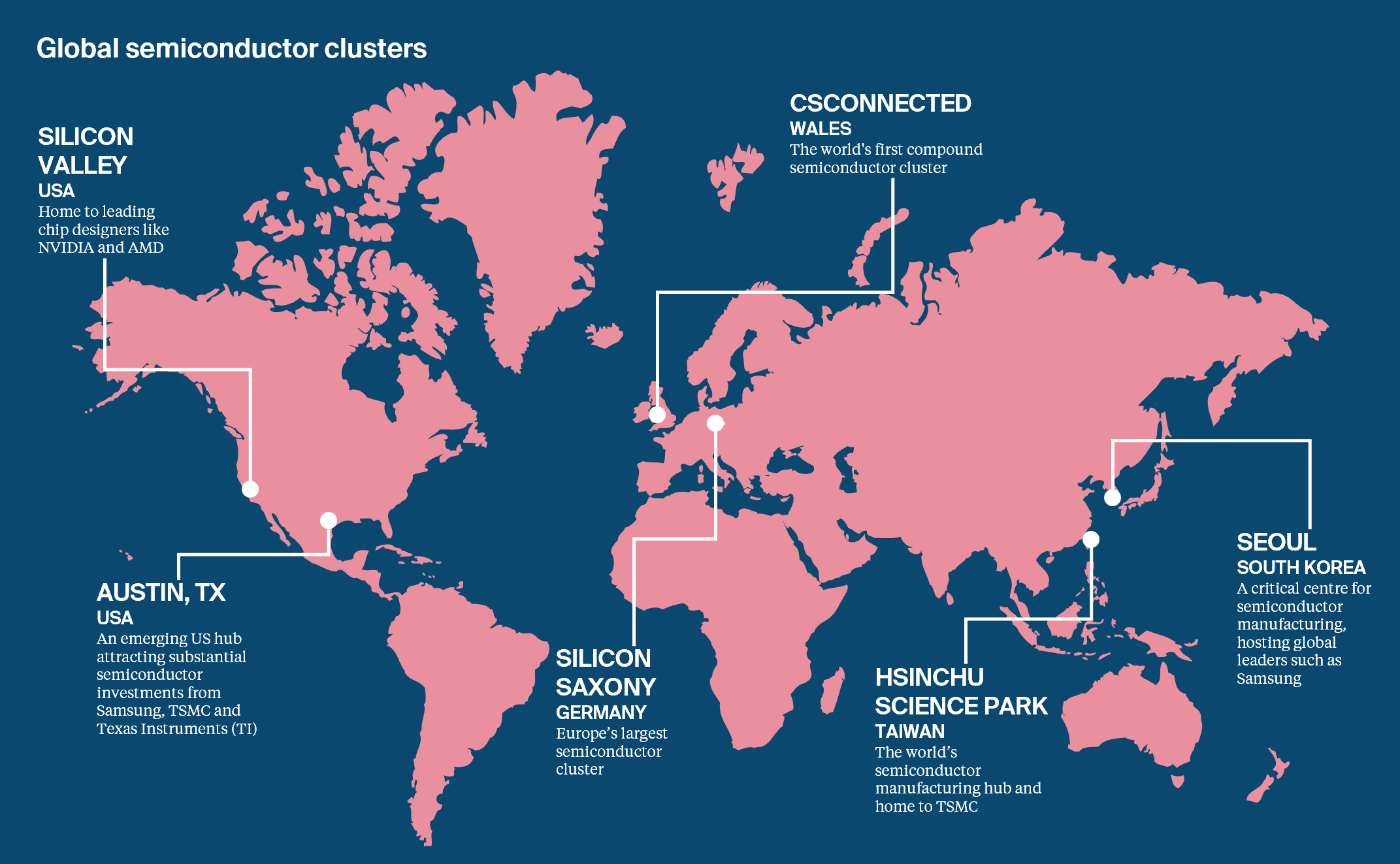 - The semiconductor industry is a globally interconnected ecosystem. The US and the UK lead in R&D and chip design, while Asia, particularly Taiwan, South Korea, Japan and China, dominates chip manufacturing.