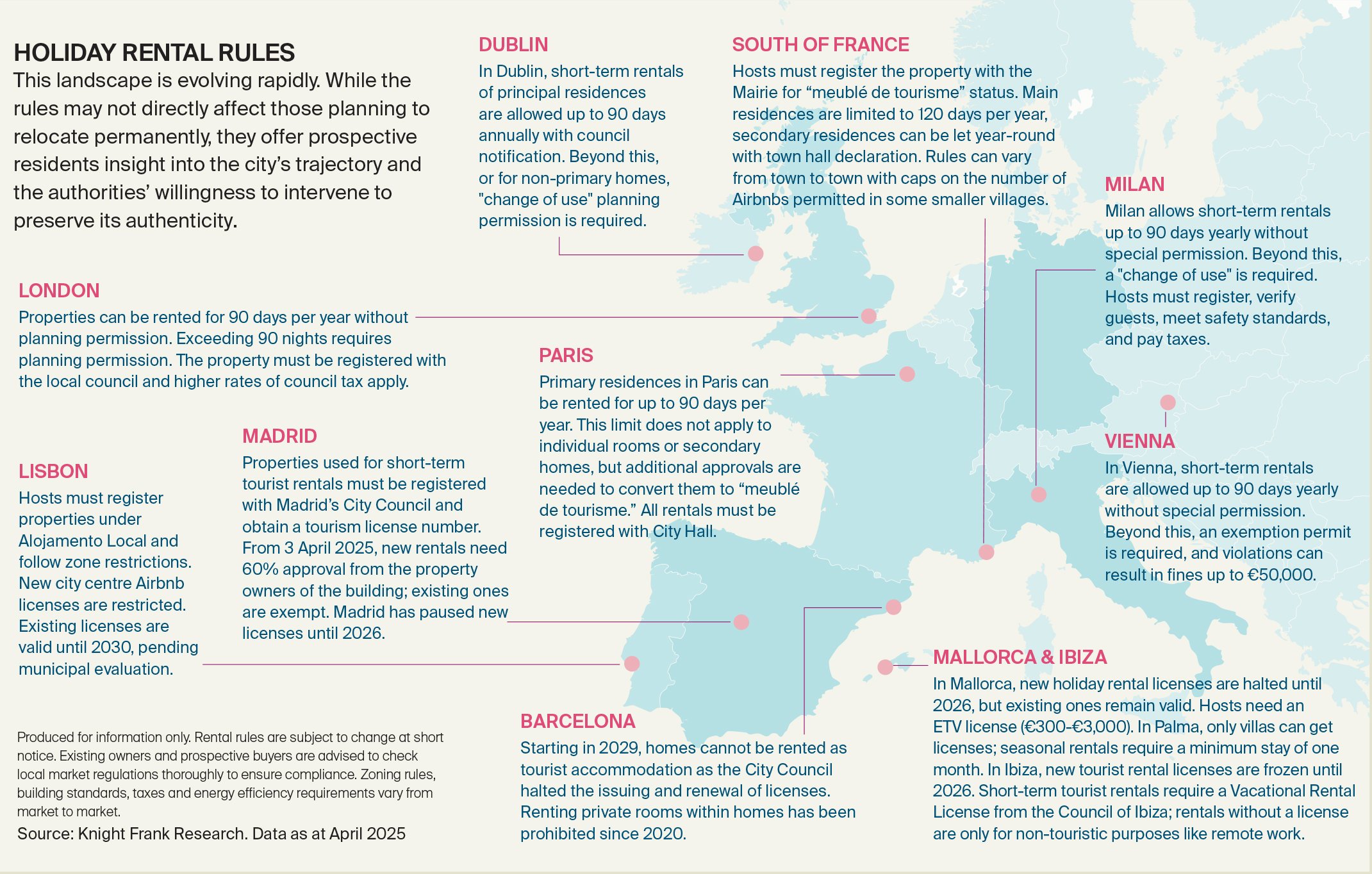Over the past 12 months, governments have issued a rapid succession of announcements addressing rising debt, housing affordability, overtourism, and climate concerns. Blink, and you could miss another set of changes. This space is set to become even more crowded, as we explore on page 21. Expect stricter citizenship requirements, potential new wealth taxes from left-leaning administrations, fewer Golden Visa options, and, most notably, tighter regulations on holiday lets and Airbnb properties, explored in detail below.