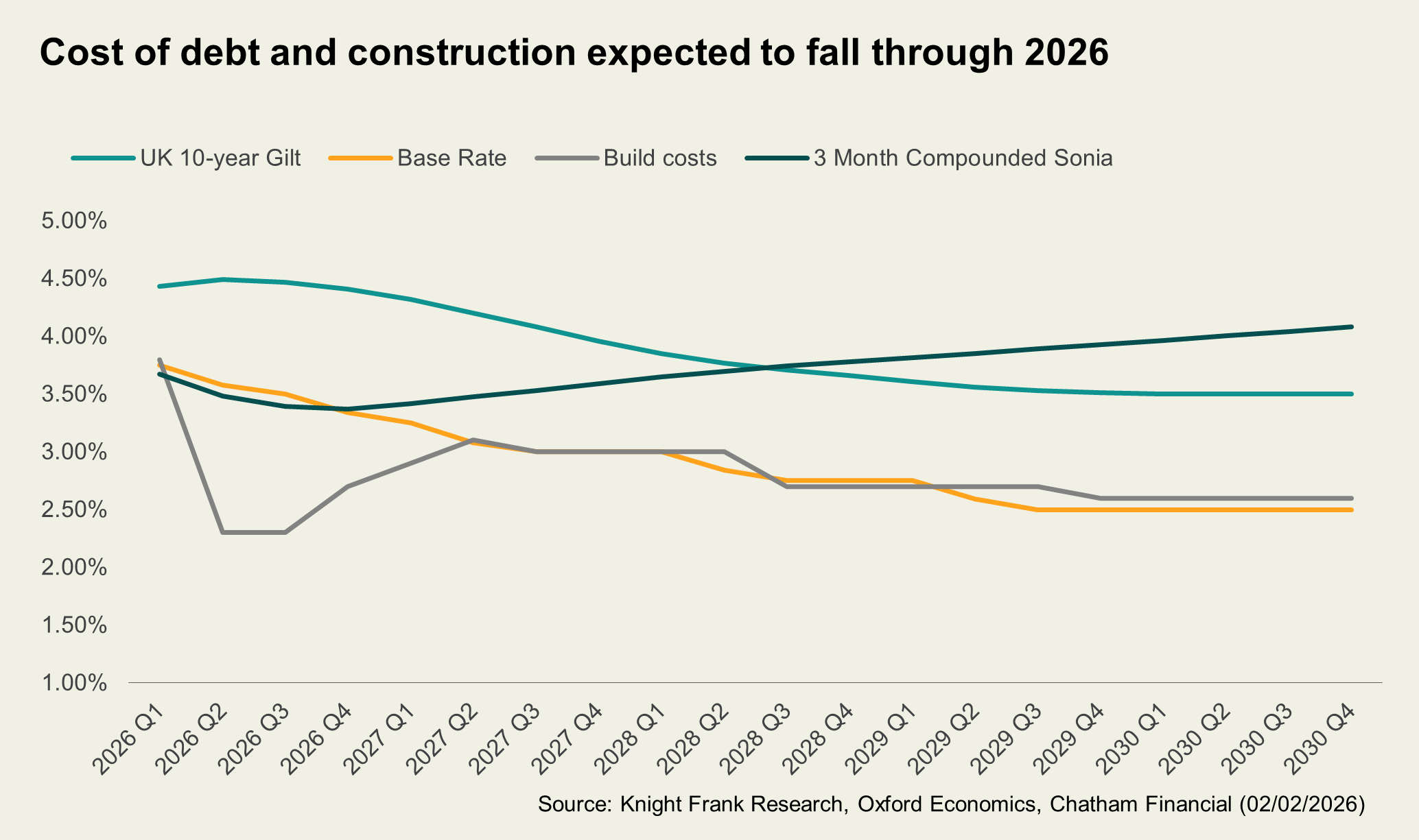 This has lifted sentiment among developers and housebuilders, with tentative signs of a recovery in appetite for land emerging through December and January. The prevailing view is that Q4 will mark the bottom of the market, though any recovery will hinge on borrowing costs easing further, alongside renewed government efforts to reduce planning and regulatory hurdles and the introduction of a support scheme for buyers at the foot of the property ladder.