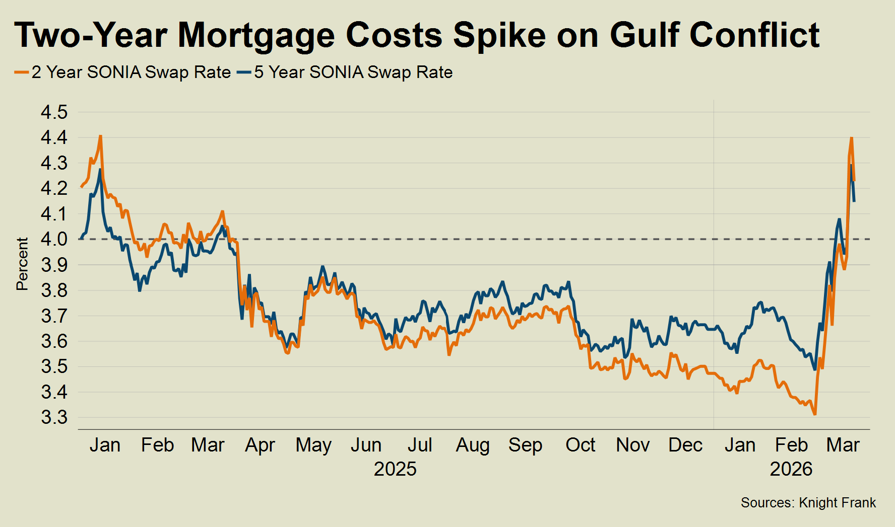 Rising swap rates have pushed fixed-rate mortgages higher in recent weeks, meaning most loans are currently priced above 4.3%, which is similar to the early weeks of 2025.
