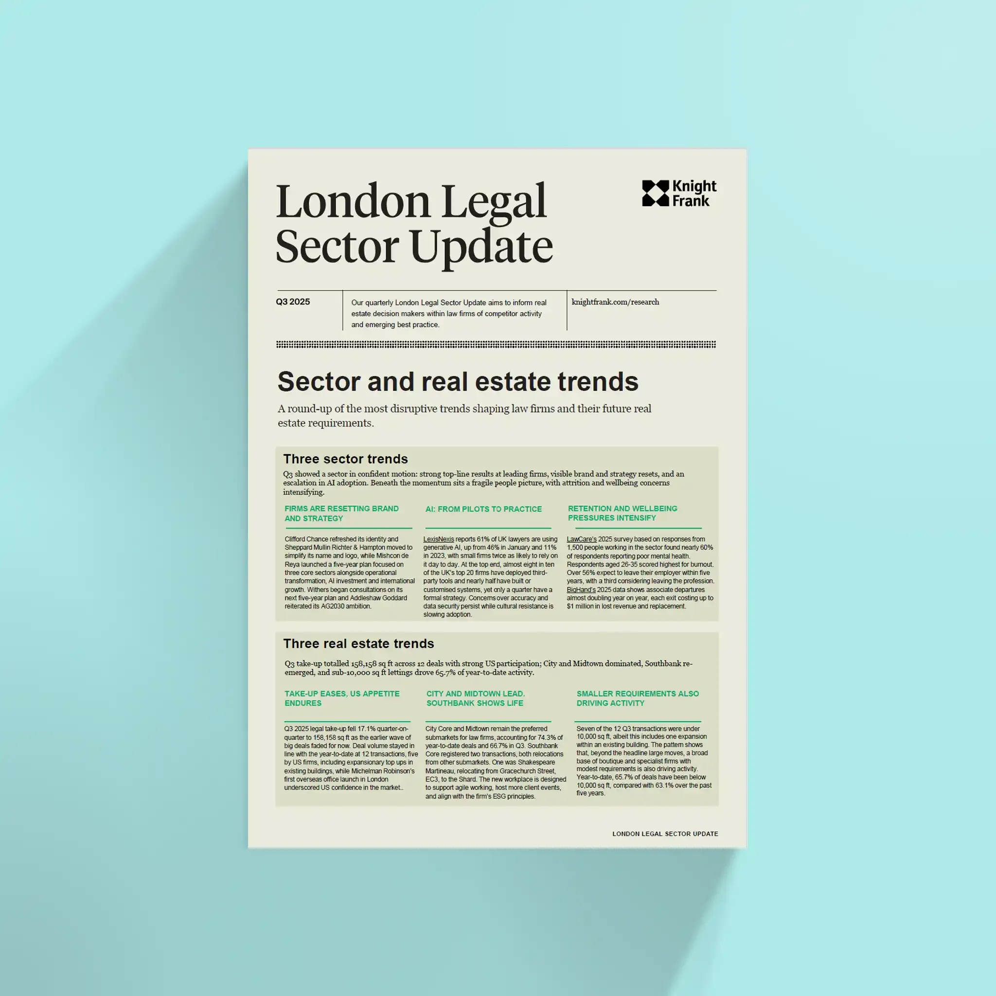 The London Legal Sector quarterly update aims to inform real estate decision makers within the law firms of competitor activity and emerging best practice.