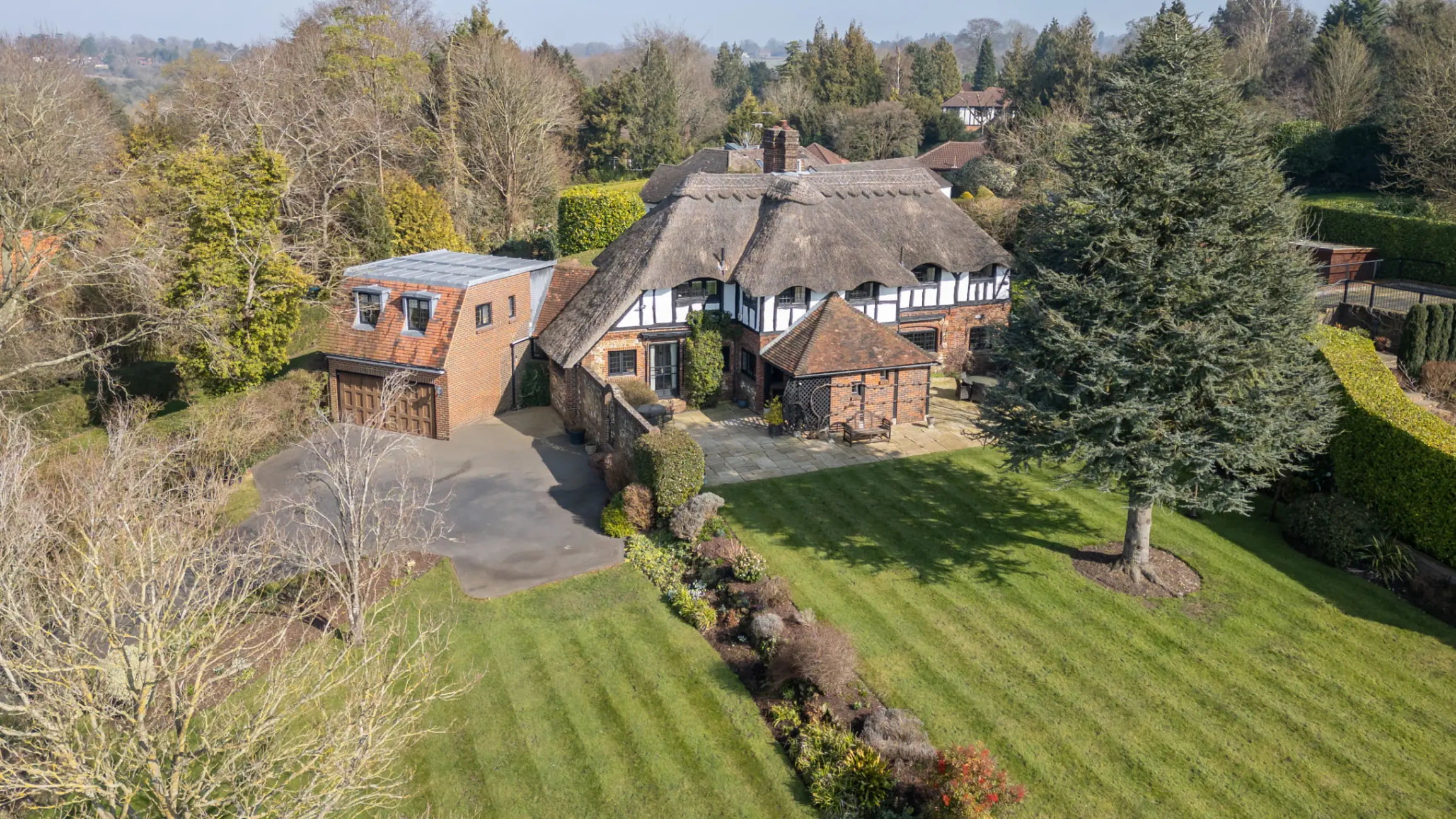 In Surrey, on the edge of Box Hill, Beaverbrook is a superb country house hotel set on 470 acres. As well as 18 elegantly designed rooms, there’s a grand dining room, cosy snug spaces, and the UK’s first home cinema, where Lord Beaverbrook and Sir Winston Churchill once held wartime discussions. Less than two miles away on the sought-after Givons Grove estate, this characterful late 1920s home features spacious living areas, landscaped gardens, and a garden studio currently being used as a home office.