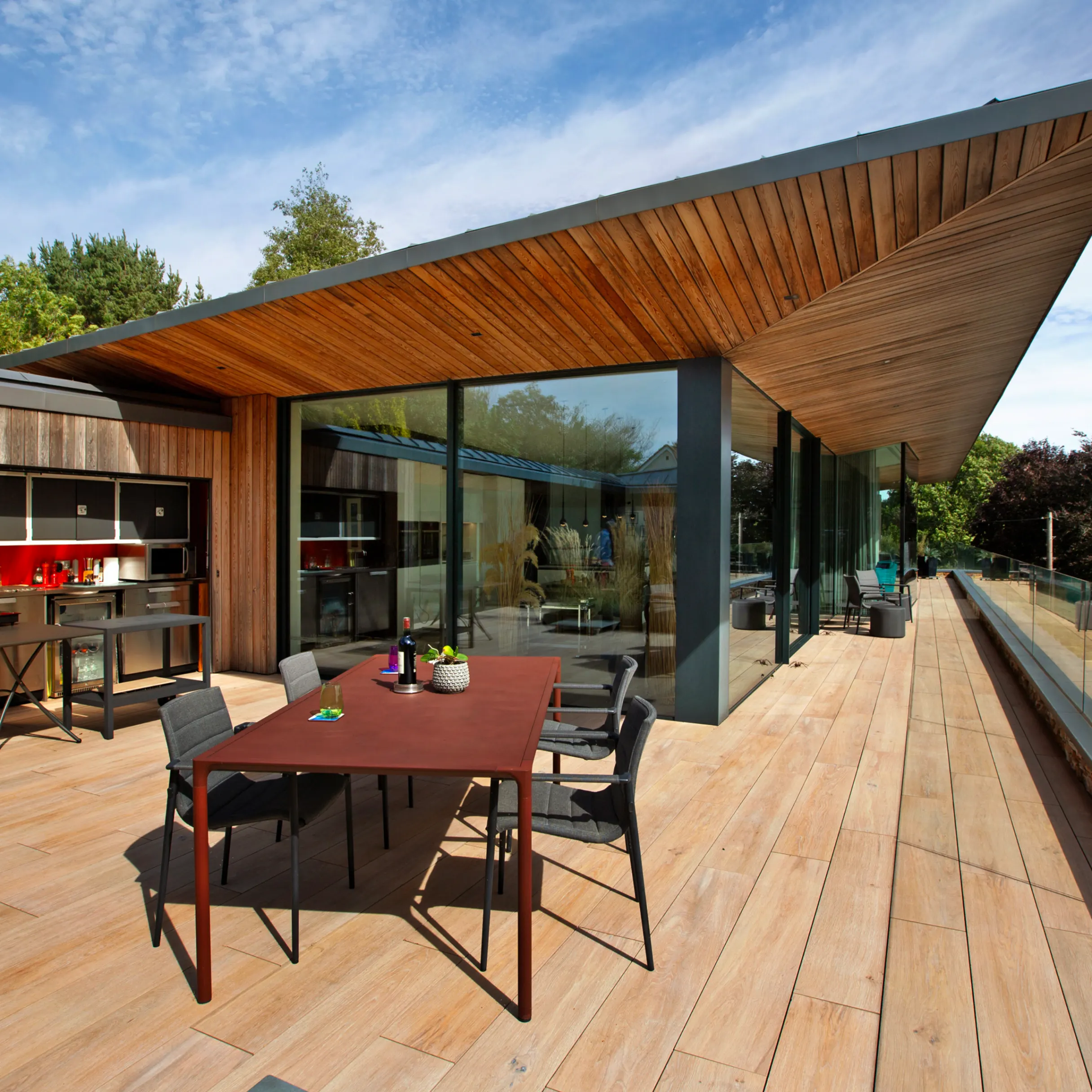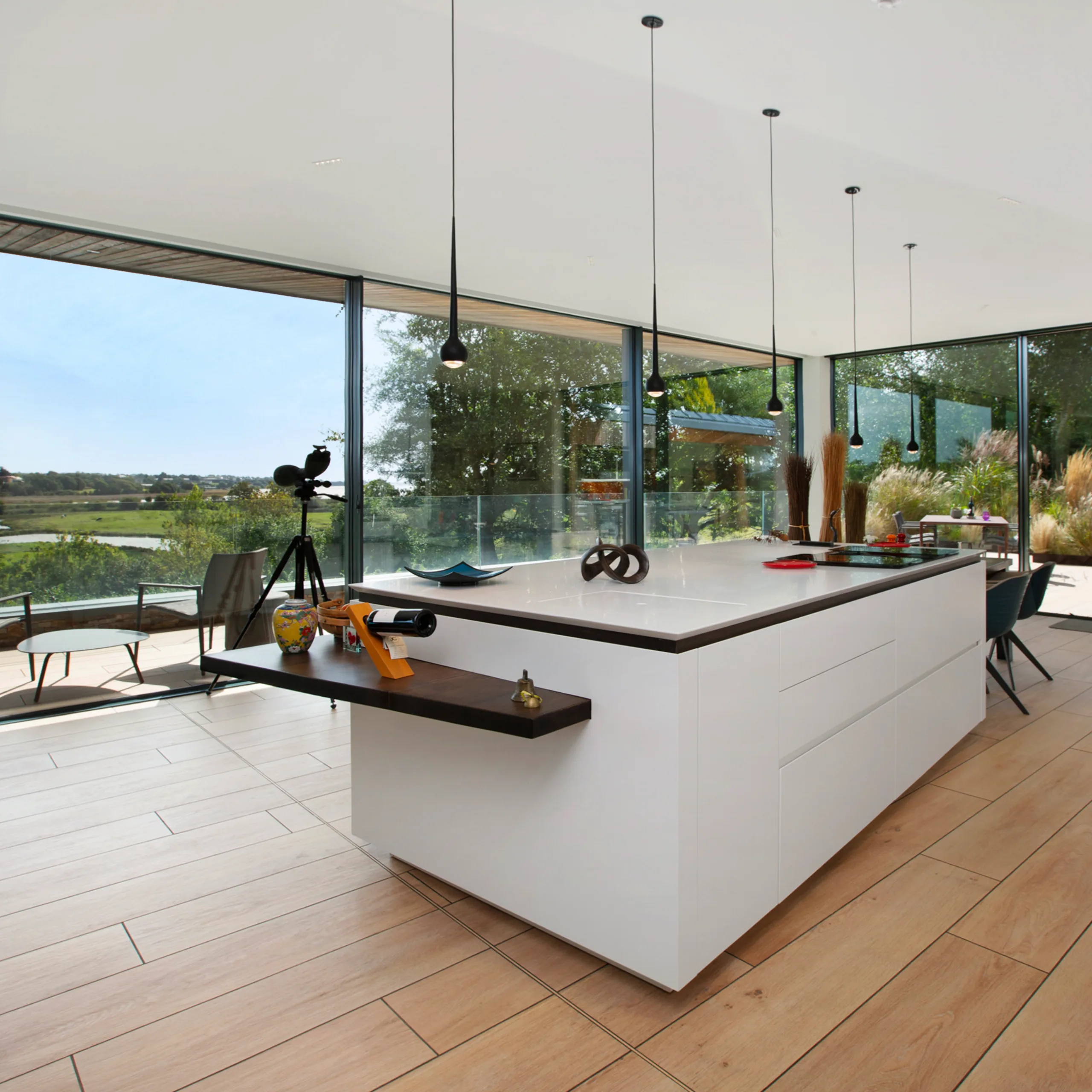 The glass was one of the biggest challenges - and successes. “The window in our dining area is 4 x 3 metres, and at the time the largest piece of glass installed in any residential house in the UK,” explains Ian. “We met with the board of a leading European glass company in Tipperary to better understand its qualities, such as UV radiation reflection, because it’s so integral to the home.” The glazing was made even more important due to Rosemary’s degenerative sight condition, requiring lots of light but no glare, with the property’s overhanging roof eaves blocking overbearing summer sun while enabling low winter sun to enter.