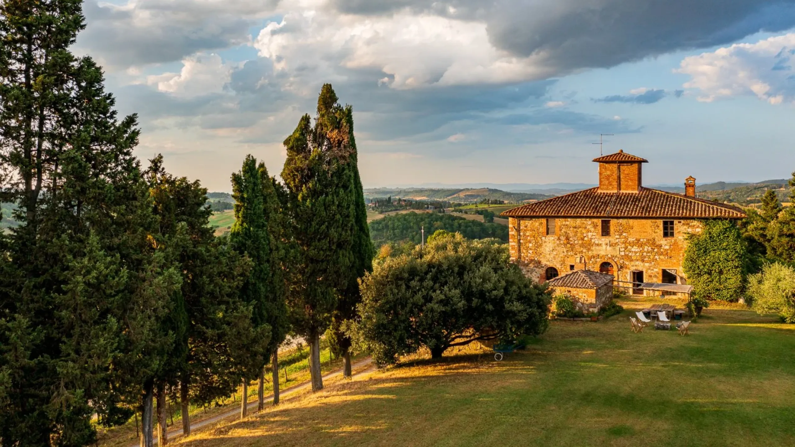 Its cinematic appeal extends beyond the architecture to its setting. Privately positioned among rolling hills and vineyards, the five-bedroom property offers a rare sense of seclusion while remaining conveniently close to Cetona and Piazze. The well-maintained grounds span approximately 8,000 sq m, featuring a garden where you can dine beneath the shade of the pergola, framed by majestic cypress and olive trees. The swimming pool is perfectly placed to take full advantage of the sweeping views of the valley, providing an idyllic spot for relaxation and reflection.