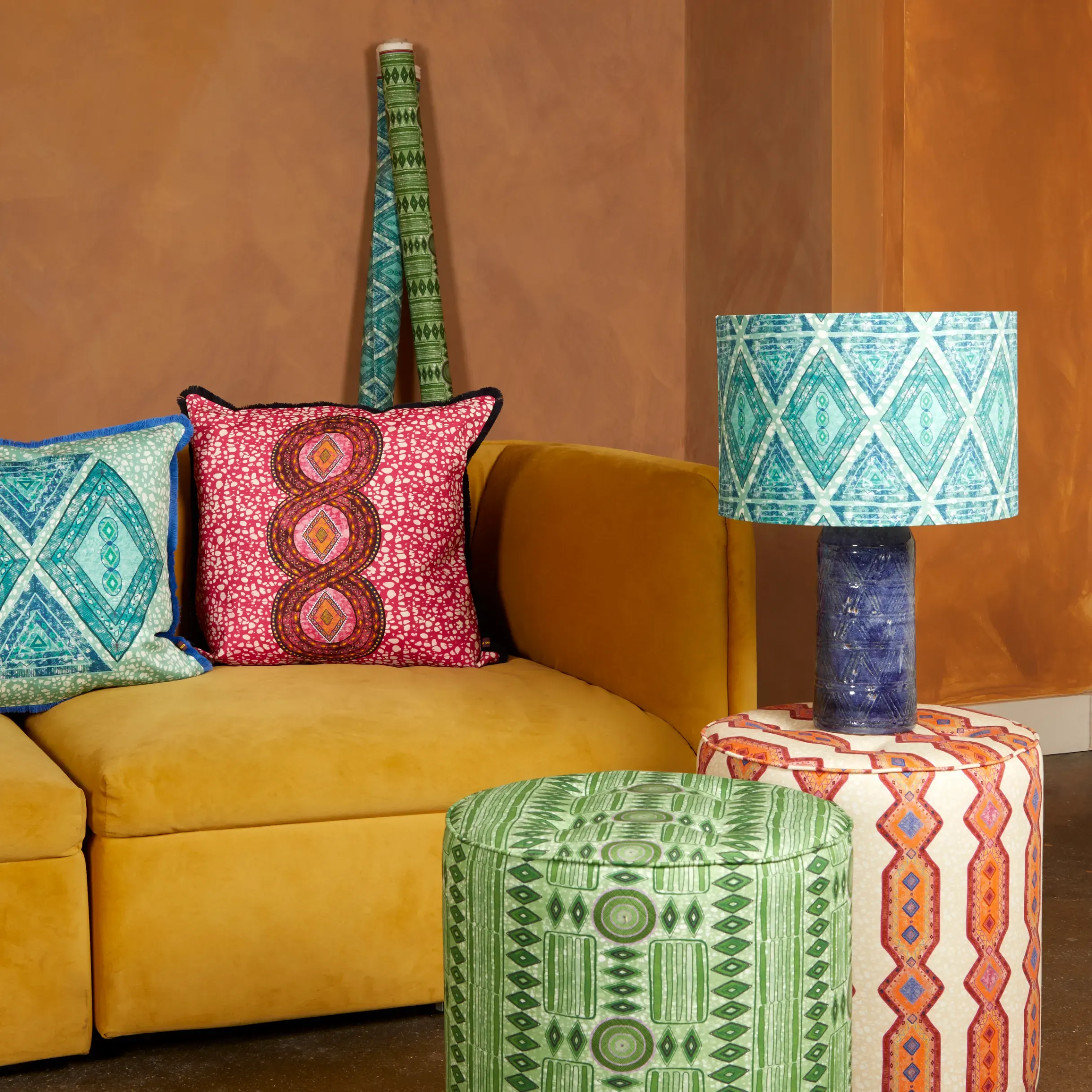 From cushions, Eva grew her brand into a full interiors collection, united by her bold use of West African-inspired prints, all hand-drawn by her and printed in England. “I sketch everything by hand. It’s my own version of West Africa, rooted in Yoruba culture, but reinterpreted through my eyes. Every design tells a story.”