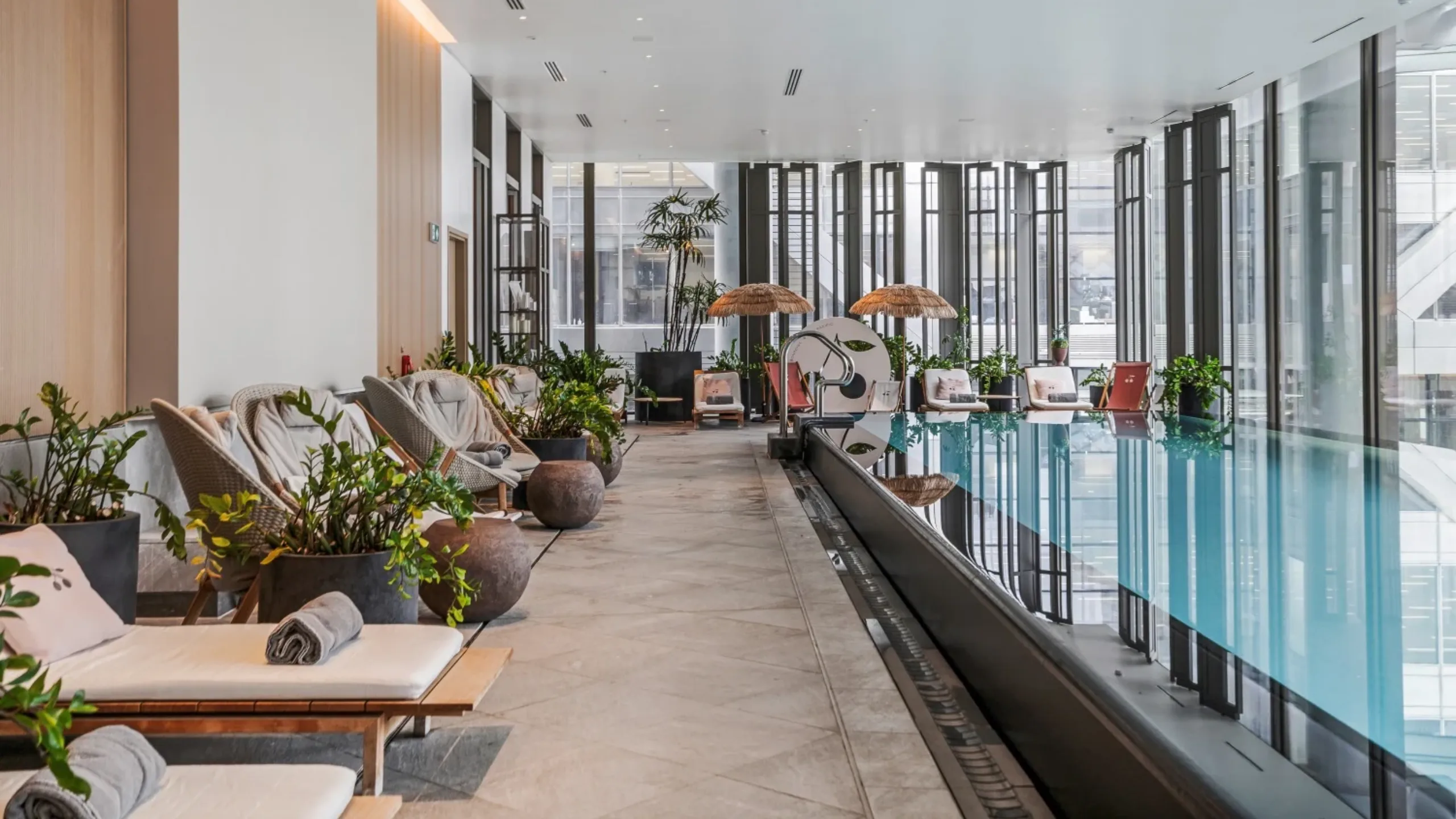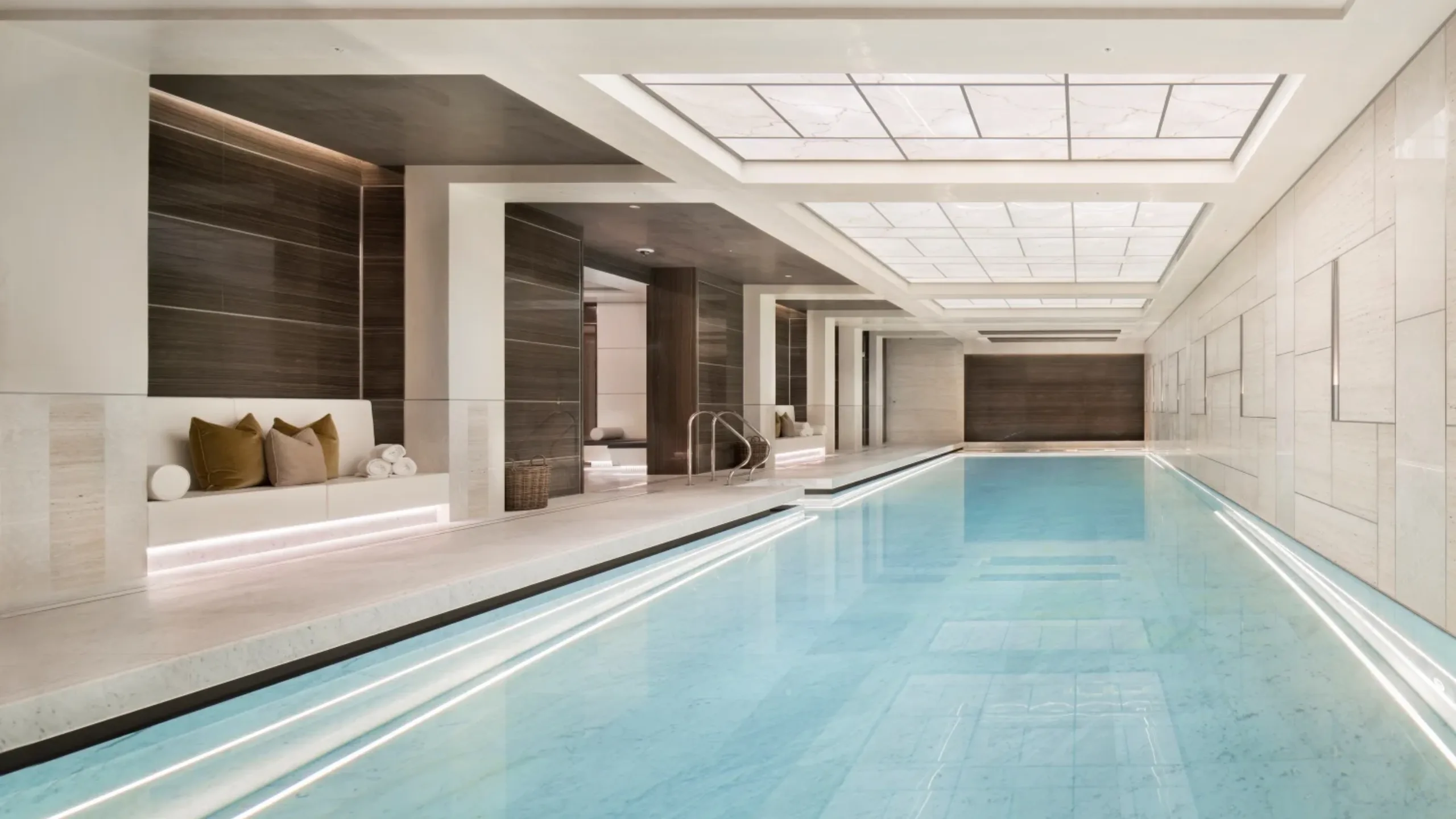 Health is taken seriously at this development in the heart of the City, with a comprehensive offering that includes expert oversight from the on-site Wellbeing Manager Robbie Leung, a former Olympic athlete. Whatever your goals, their team works in close collaboration to help achieve them. This could range from personal trainers working with your yoga instructor to ensure you get enough rest, to your facialist consulting with your nutritionist to solve any dietary issues affecting your skin. Within the 3,500 sq ft space dedicated to holistic wellness you’ll find tech-forward Tecnobody equipment, including its revolutionary D-Wall digital training system, and a state-of-the-art spa complete with a serene 60-ft swimming pool bathed in natural light.