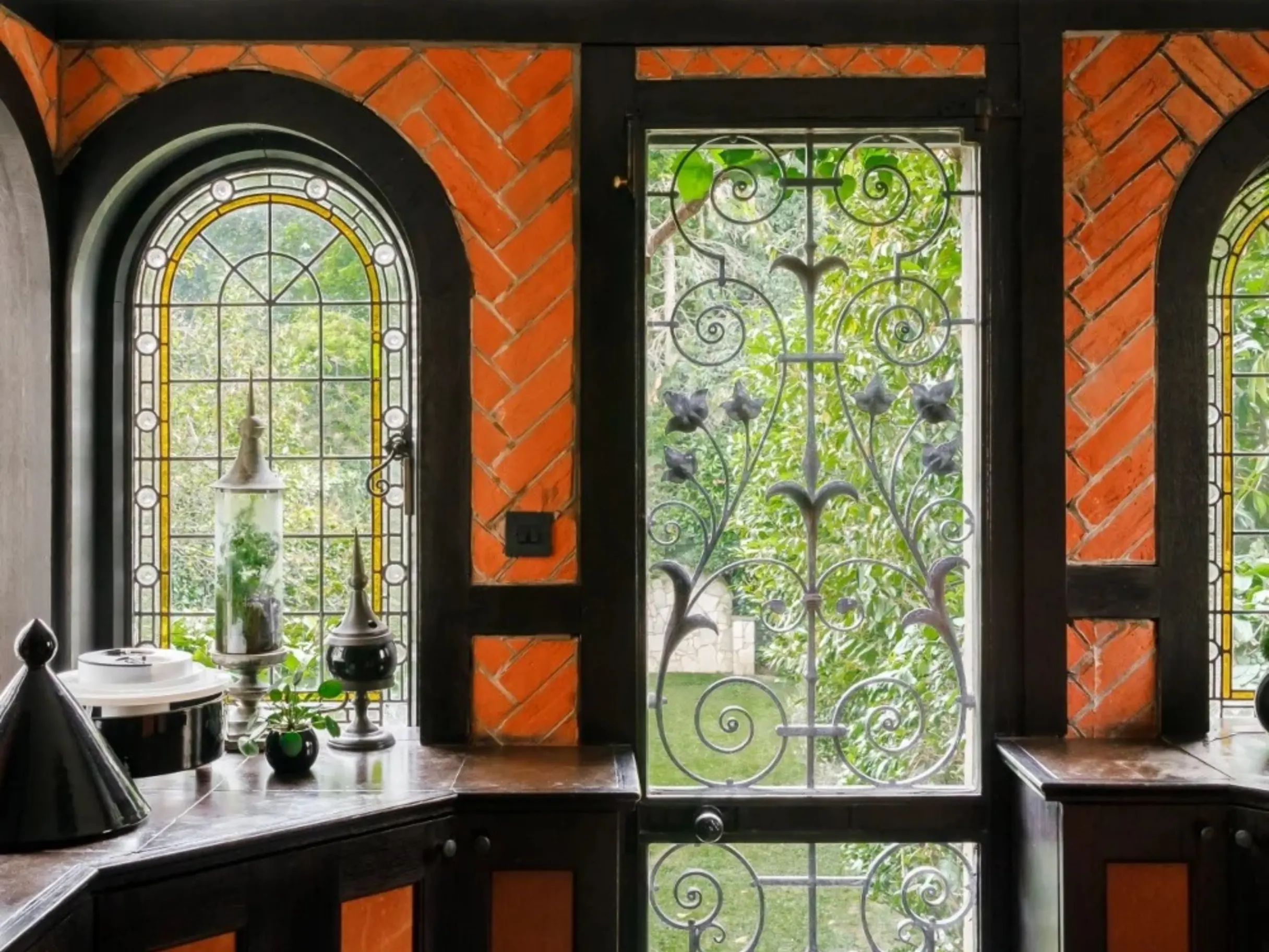 In later years, the garden flat was also incorporated into the rest of the house, giving Michelle a studio space, as well as a small wine cellar, a study, utility room and two bedrooms in addition to the five upstairs. Though this part of the house had been modernised, Michelle reintroduced metalwork and other elements from the original design to create a coherent whole.