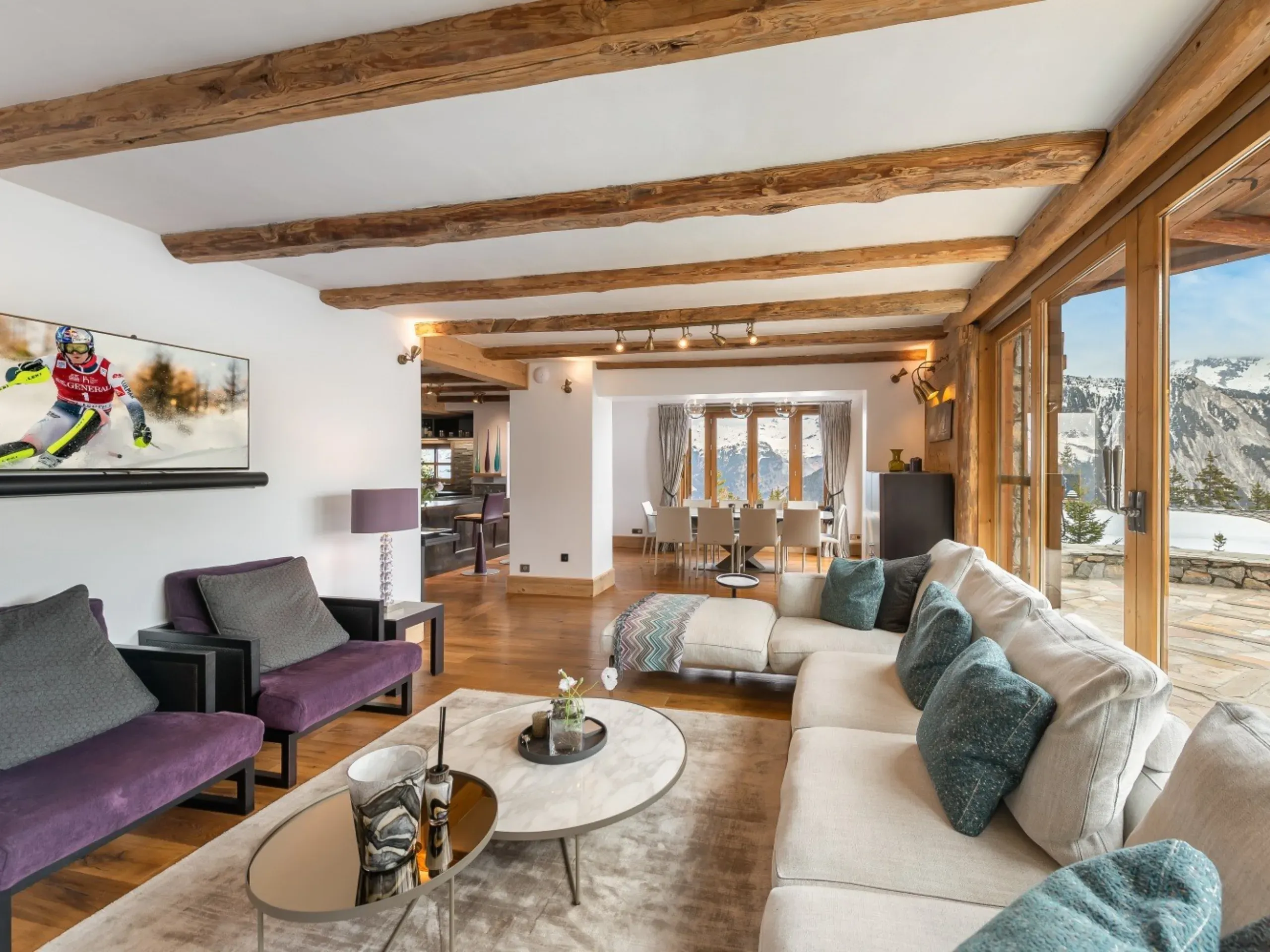 Its where properties such as this exceptional 10-bedroom chalet excel, positioned in a highly desirable and private location in Verbier with direct access to the Moulins piste. Its spacious interior is spread over five floors, including vast living spaces perfect for larger gatherings featuring floor-to-ceiling windows providing breathtaking views over the mountains.